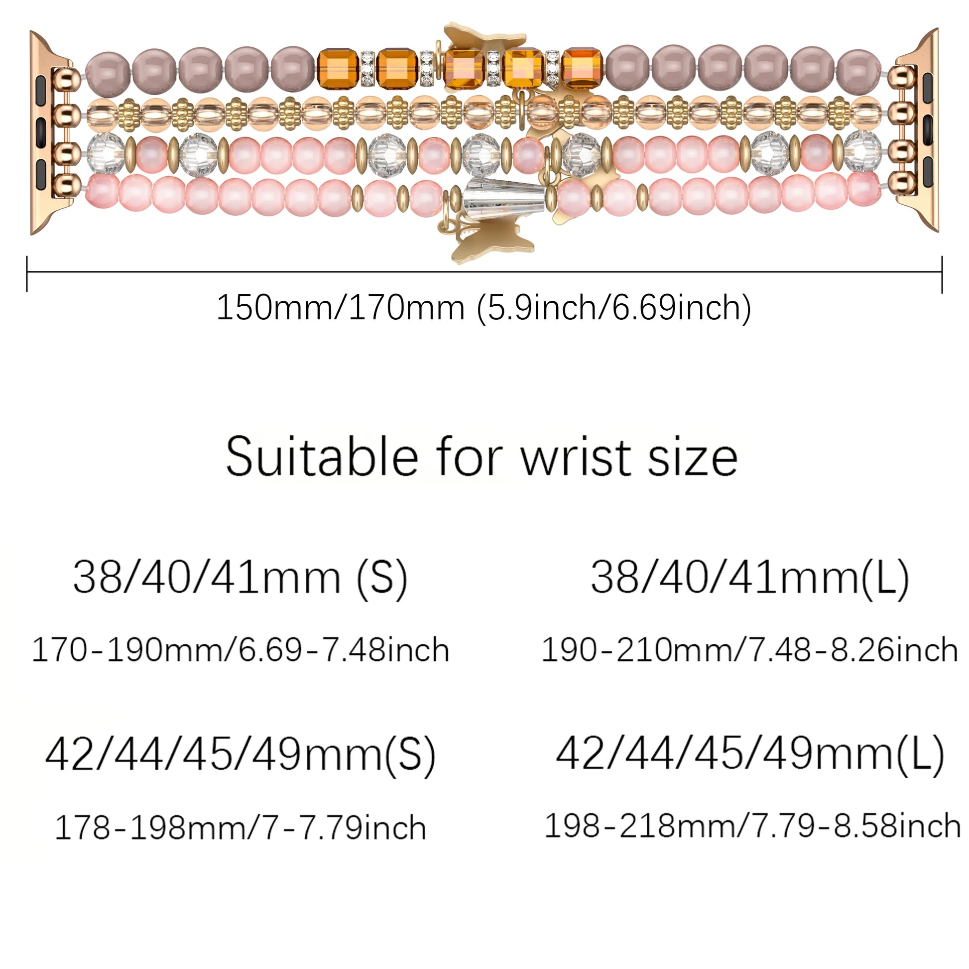 - 💎 Handmade Beads & Crystals: Each beaded apple watch band is uniquely handcrafted with lustrous beads and rhinestone spacers.