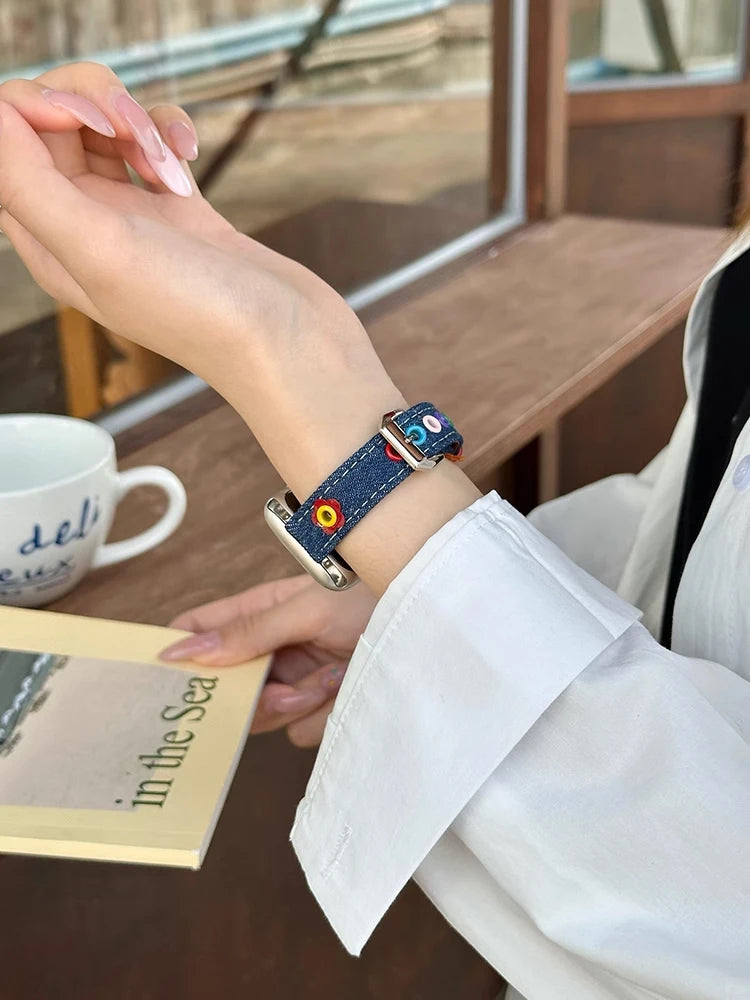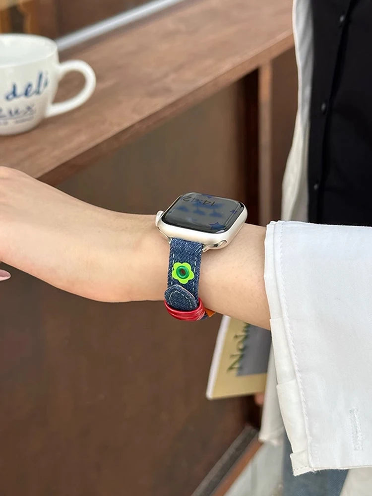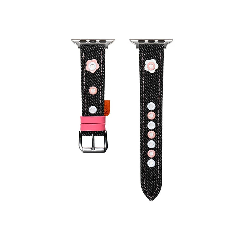 1 × Cute Denim Leather Band (Apple Watch not included)
