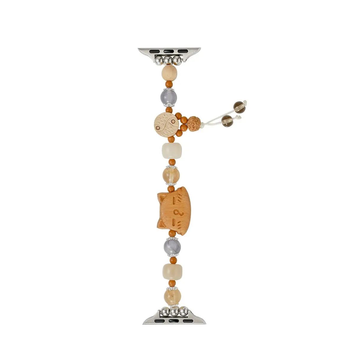 Wooden Cat Beaded Apple Watch Band – Handmade Bracelet Strap