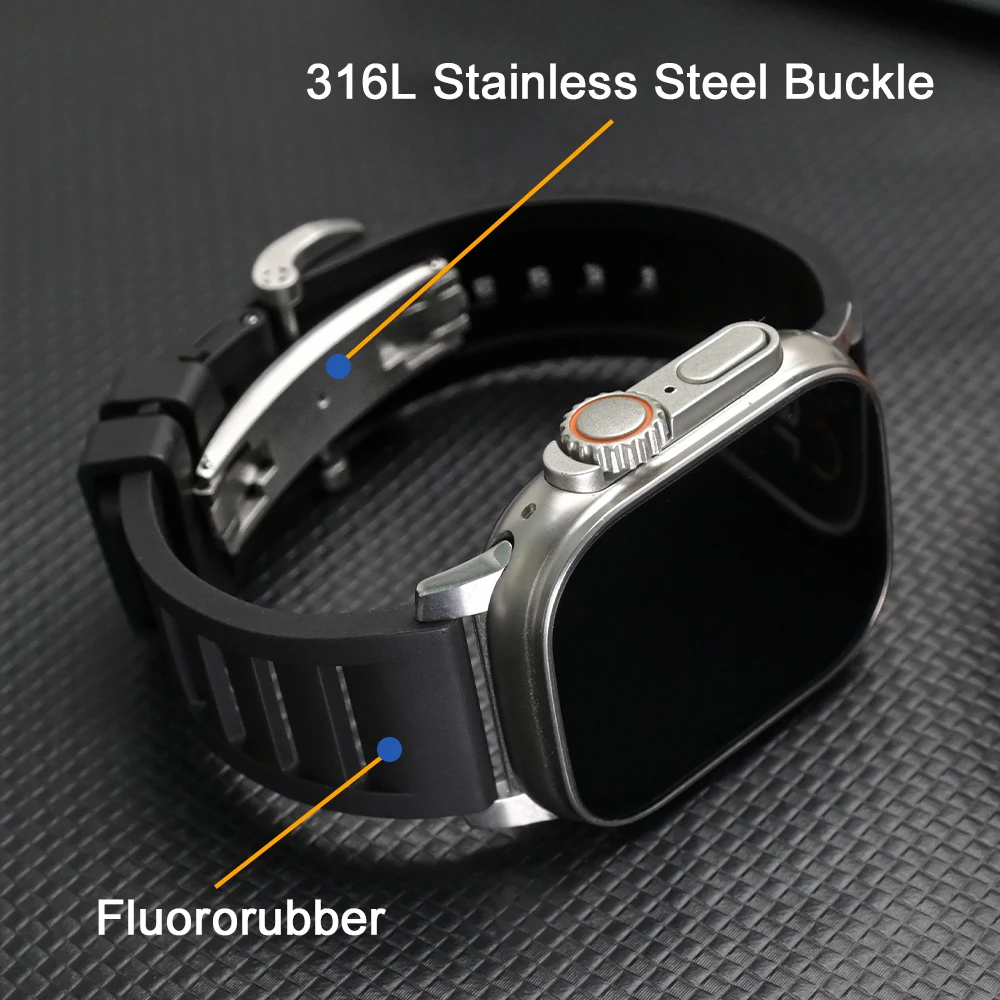 Crafted from high-grade fluororubber and paired with a 316L stainless steel butterfly buckle, this band delivers a perfect balance of durability and elegance—whether you're training, working, or traveling.